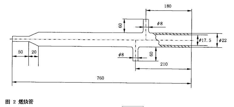 1.2 燃燒管:透明石英管,能耐溫1300ºC以上,規格尺寸見圖2