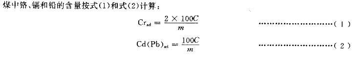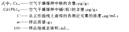 煤中鉻、鎘和鉛的含量按式(1)和(2)計算: